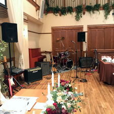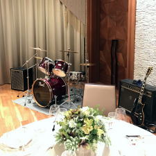| 小口径ドラムセット.小型ギターアンプ.ベースアンプとマイク.ボーカルアンプの簡易音響セット付き。 出席者30名までのご宴席限定。無料配送地域あり.回収.リハーサル立会い音響調整込み。 |