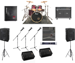 ドラムセット、ギターアンプ、ベースアンプとマイク、音響ミキサー、音響スピーカーなど本格的音響セットが付いてこの価格。愛知.岐阜.三重県内の学校配送無料。音響オペレーター込みです。 | ドラムセット、ギターアンプ、ベースアンプ、コンサート音響セットのお得なバンドセット価格です。 1日1組限定です。名古屋市内配送込み。音響オペレート込みです。 |